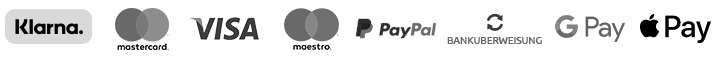 | Zahlungsweisen | Vooraf per bank, met iDEAL, Creditcard, Paypal of achteraf met Klarna. Alle prijzen zijn incl. BTW. |